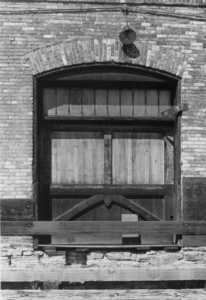 A one and one-half story, gable-roofed warehouse was attached to the Freight House and extended southeast 500 feet behind the Freight House. Loading docks opened on either side of this long, narrow building. On the back exterior wall of the Freight House, the shadow of the gabled roofline is still visible, suggesting the building once attached.