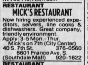 From 1992 through 1995, Mick’s restaurant occupied the space. Mick’s was an Atlanta based chain.