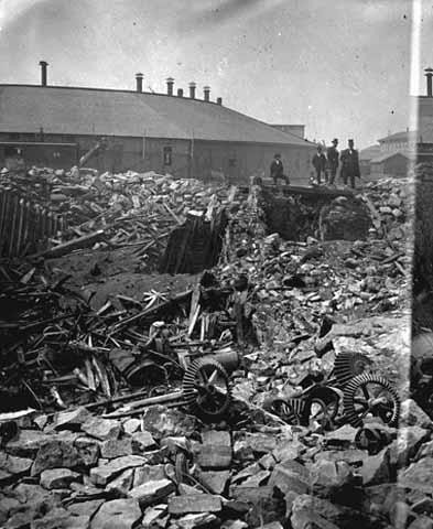 A second explosion occurred at the mill in 1878. Due to poor ventilation, flammable flour dust particles accumulated in the Washburn A Mill. At six o’clock on May 2, 1878, the day-crew left the Mill; and fourteen men on the night crew arrived. An hour later, a spark ignited the flour dust, and the seven-story Washburn A Mill exploded, hurling debris hundreds of feet into the air. The explosion was heard ten miles away in St. Paul.