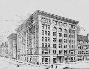 In May 1896, Walker sold the property to Wyman, Partridge & Company for $56,500. Long and Kees drew the plans and the building – the second in Minneapolis to be of steel construction – was to be “one of the finest in the Northwest.” Plans for the building included dividing the building into two parts: a salesroom and a warehouse, with a firewall running between the two. C.F. Haglin was awarded the contract to excavate the property, lay the foundation, furnish the iron, and construct the building. The building was to be fireproof throughout, “as to head off all possible incipient conflagrations”. It was boasted that the building was the most convenient wholesale mercantile building in the Northwest.