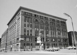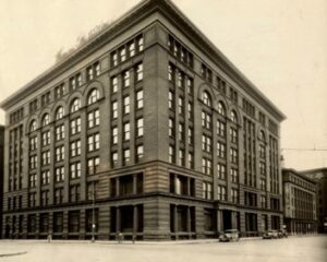 The new business model proved to be short-lived. In 1934, four years after the merger, the Wyman Partridge Building was reconceived as the Wyman merchandise mart, a facility specifically planned for the local textile industry. United Dry Goods vacated the building at First Avenue North and Fourth Street and rented the space for light manufacturing, jobbing, manufacturers’ agencies, and small merchandising operations. While the building underwent substantial renovation on the interior, the outside of the building was unchanged. The new merchandise mart continued to be known as the Wyman Building, named in honor of Oliver Cromwell Wyman, founder of Wyman Partridge.