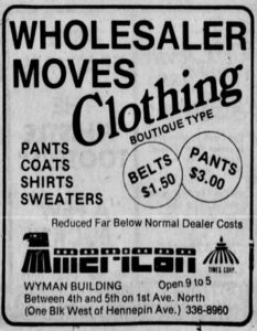 By the 1950s, Minneapolis had become known as the underwear capital of the world, and Minnesota was the second-largest market for the manufacturing of infant and children’s clothing. Activity in the Wyman Building was at an all-time high. Thousands of people worked in the Wyman Building, making coats and dresses.