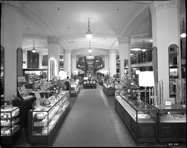 The Stock Market Crash in 1929 and the Great Depression changed retail business. Quinlan worked to keep the business sponsoring displays in the fifth-floor auditorium, exhibiting antiques and artifacts, featuring holidays, and hosting fashion shows. During the 1930s, the store offered more moderately priced clothing and accessories. Quinlan’s efforts worked, and she kept the store’s staff employed. She was able to continue the business into the early 1940s.