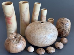Don Pohlman took up woodturning after a long career in exhibits and museum planning that began at the Science Museum of Minnesota. At his Minneapolis studio in the Q.arma Building, he produces hollow vessels and other original pieces in a variety of local woods. His work combines precise machining with open exploration of a natural material shaped by evolution, climate, gravity and encounters with other species. He is especially interested in the distortion produced by rapid drying of green wood and the defects introduced by organisms that reach the tree before the turner.